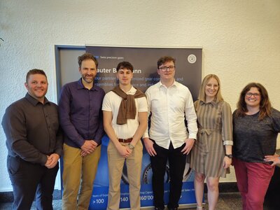 v.l.n.r.: Claudio Sovrano, Jürg Schiesser (Lehrwerkstatt), Noah Weyermann, Pascal Oester, Nicole Zürn, Barbara Zingg (Engineering)
