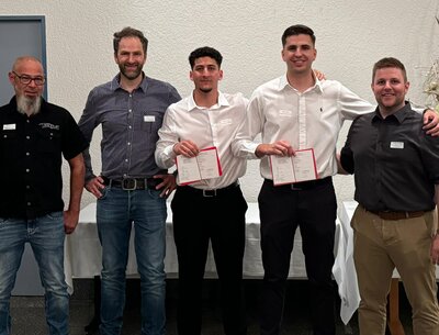 Am 26. Juni 2025 feierten Pascal Oester (Konstrukteur EFZ) und Noah Weyermann (Polymechaniker EFZ) ihren erfolgreichen Lehrabschluss. Dabei sein durften die Praxisbildner;innen Barbara Zingg, Nicole Zürn, Claudio Sovrano und Jürg Schiesser. Herzlich gratuliert wurde auch von Seiten der Geschäftsführer Reto Crestas und Max Bachmann.